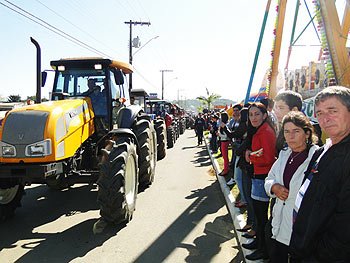 Domingo pela manhã a missa campal abriu as festividades e os desfiles de máquinas agrícolas e tratores encantaram ao público. A rainha Letícia Cichella, 1ª princesa Michele Fernandes e 2ª princesa Mariana Fernandes desfilaram em carro aberto.