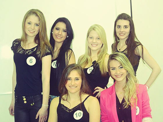 As finalistas são: Claudia Regina Gris, 18 anos de Linha Rui Barbosa; Jaqueline Kornfüehrer, 16 anos do Bairro São João; Jéssica Andressa Cosmann, 20 anos do Bairro das Nações; Mariele Pereira Teles da Silva, 21 anos de Linha Vani; Talita Carla Decezare, 19 anos do Bairro das Nações e Tayana Anandra Kuhn, 16 anos do Bairro Industrial.